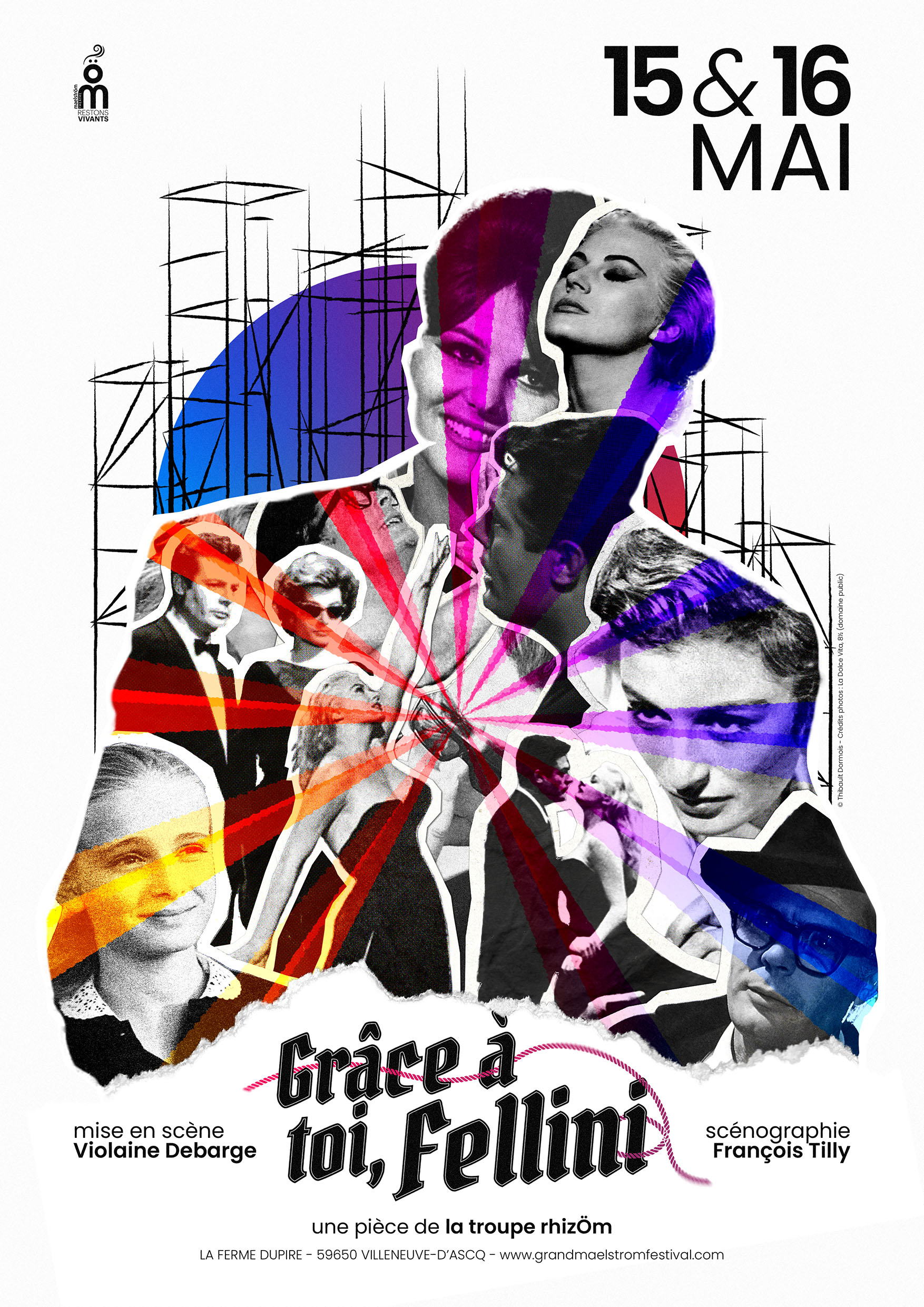 Ce spectacle s’interroge sur le vide que peut ressentir un être humain, notamment un artiste créateur au mi-temps de sa vie. Basé sur le propos et des extraits de scènes des films 8 1⁄2 et la Dolce Vita de Federico Fellini, les 17 comédien-nes de la troupe RHIZÖM nous plongent dans l’univers onirique du créateur Guido. Le réalisateur nous a promis un film, mais voilà, il a un Blanc...
